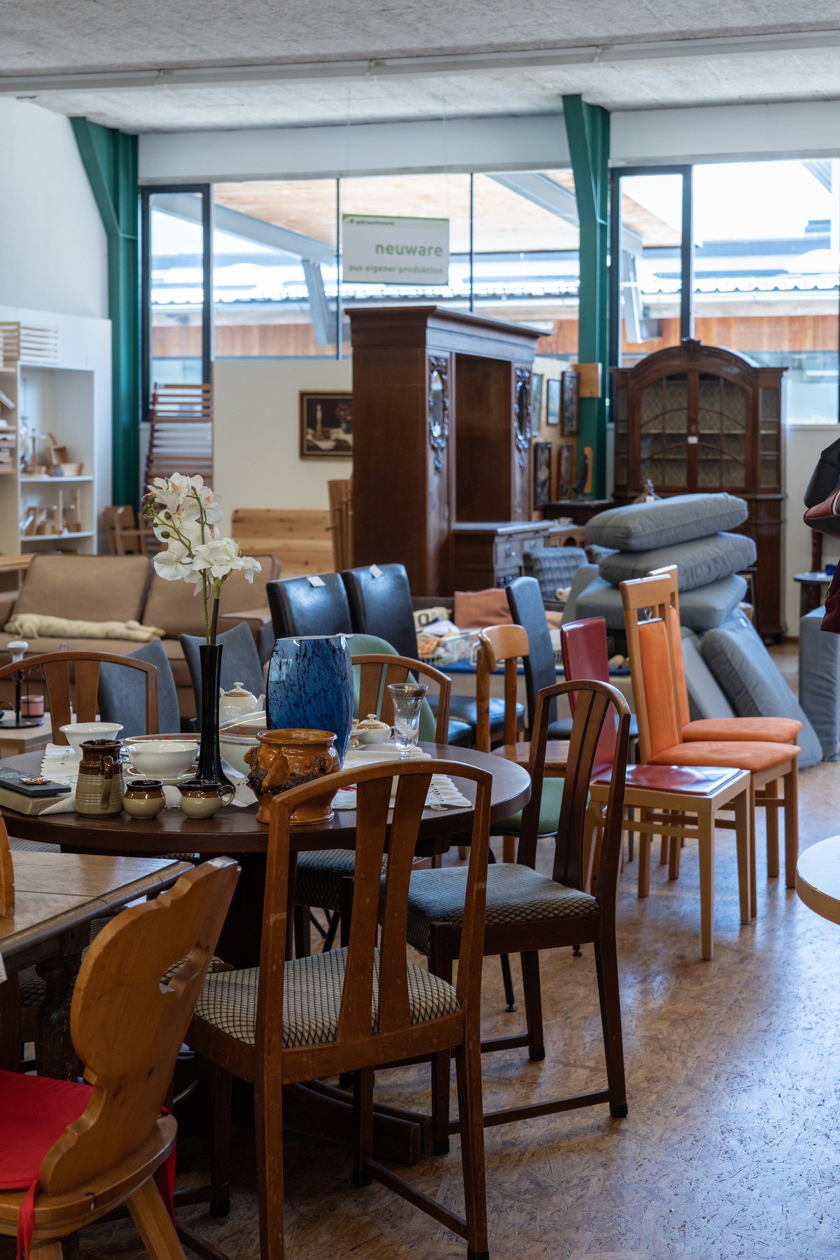 In unserem Gebrauchtmarkt in der Peggetz findest du liebevoll erhaltene Einzelstücke – Möbel, Geschirr, Geräte und kleine Alltagshelfer. Jedes Stück hat Geschichte und Charakter. Vorbeischauen lohnt sich: Das Angebot ändert sich laufend und macht jeden Besuch zu einer neuen Entdeckung.