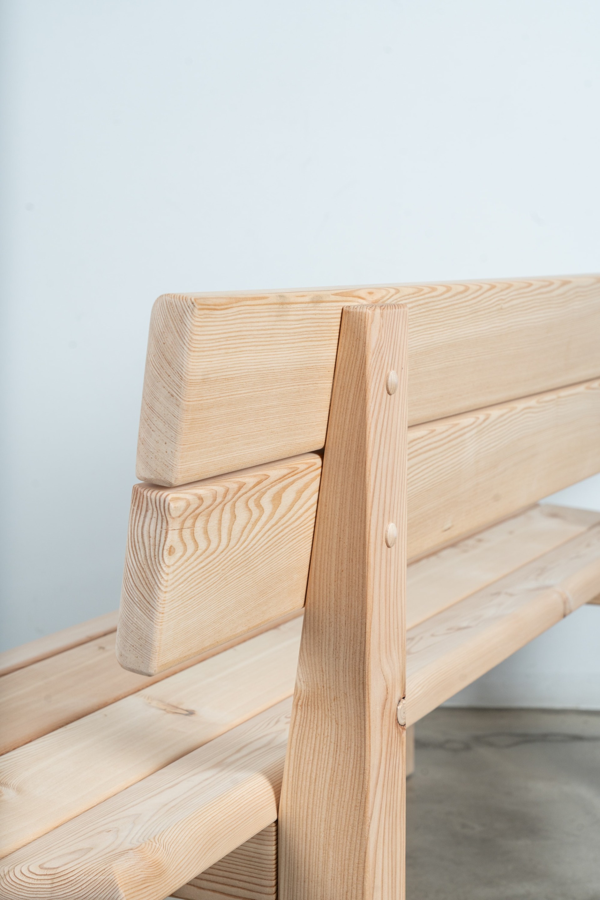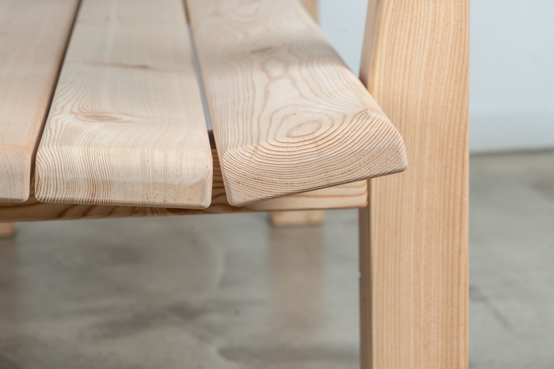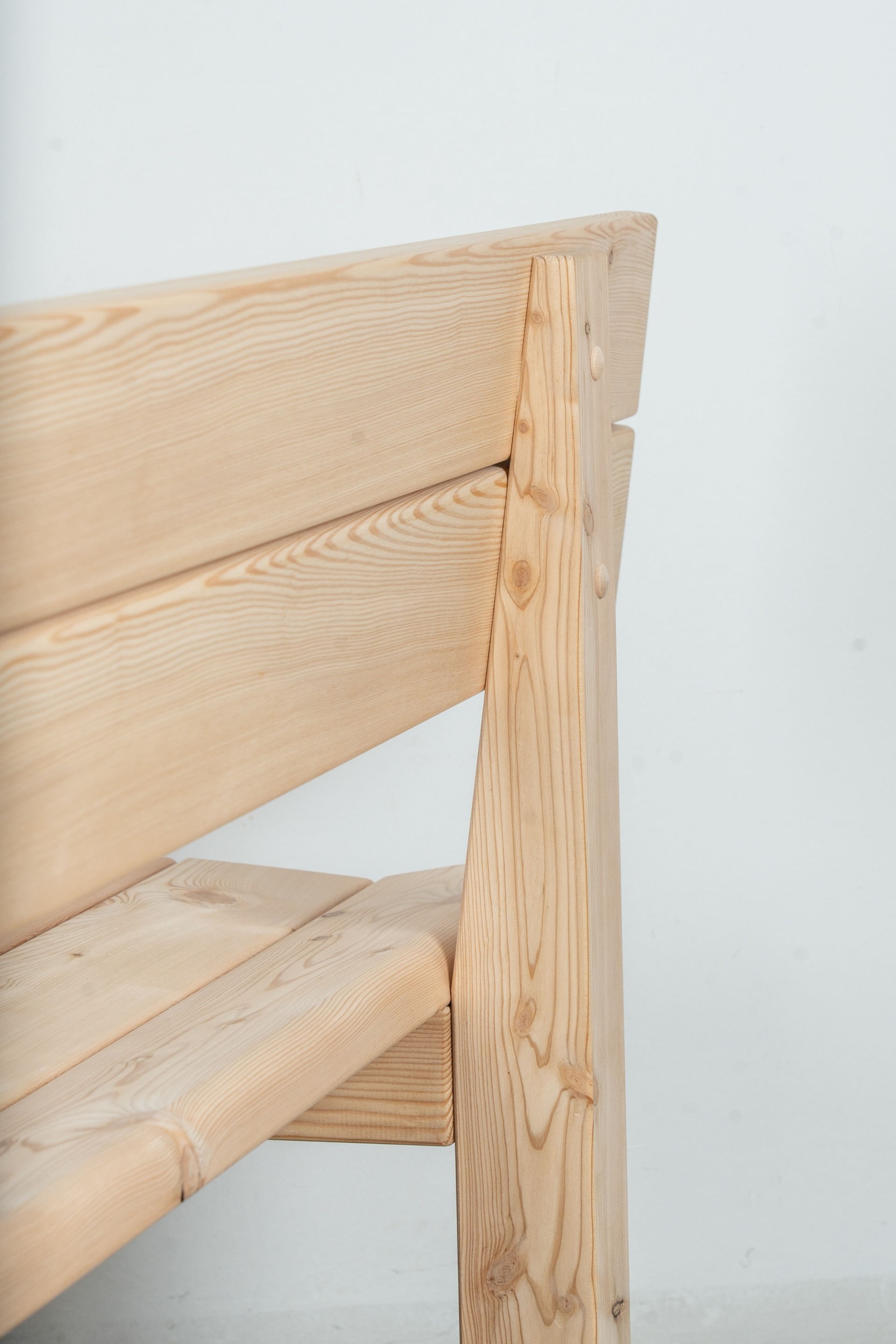 Gefertigt in Lärche oder Eiche mit hochwertiger Dübelverbindung und Edelstahlschrauben. Die Verbindungen sind mit wasserbeständigem Leim ausgeführt, alle Kanten und Ecken schräg abgefast. Solide Handwerksarbeit mit langlebiger Konstruktion.
