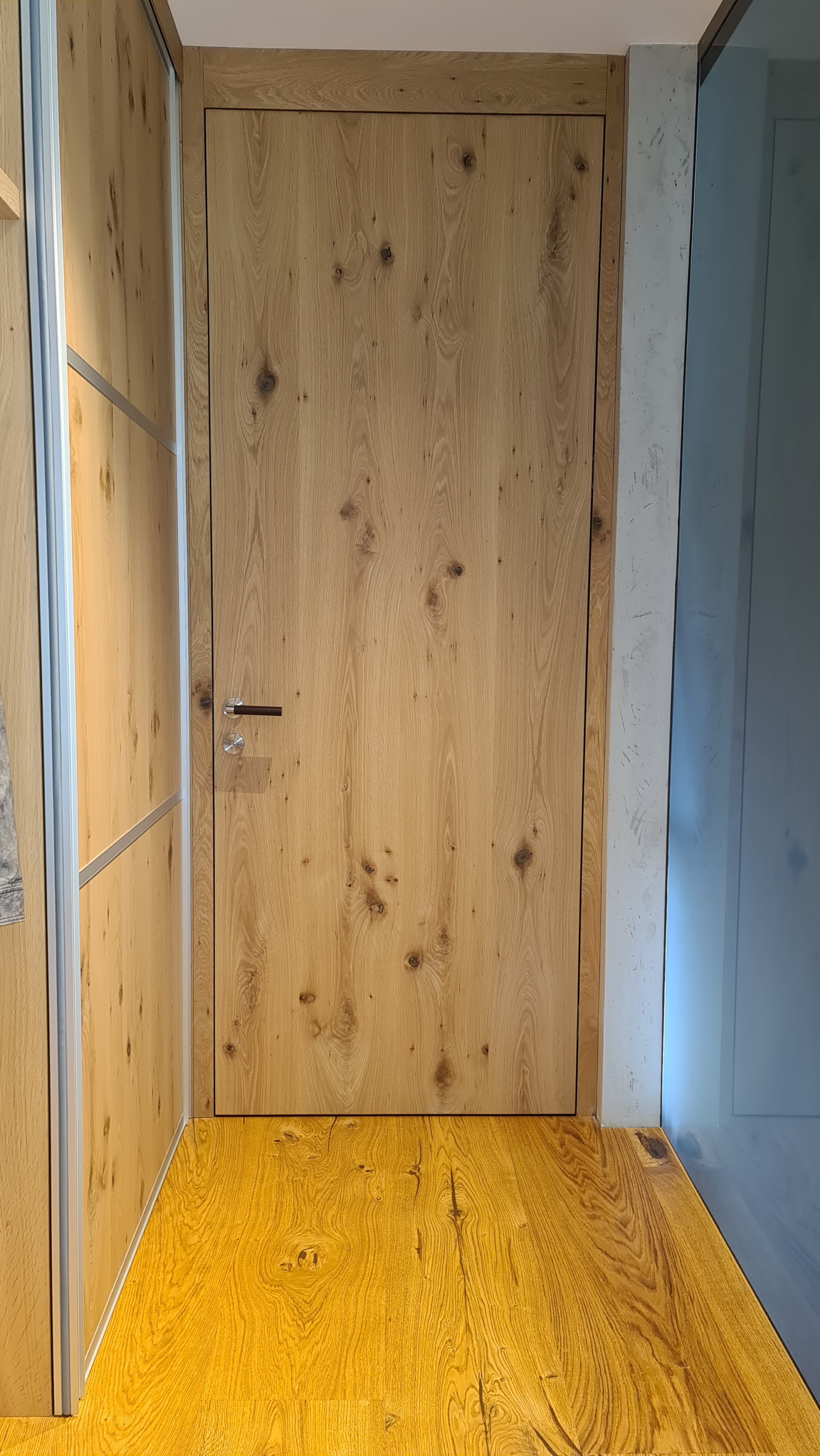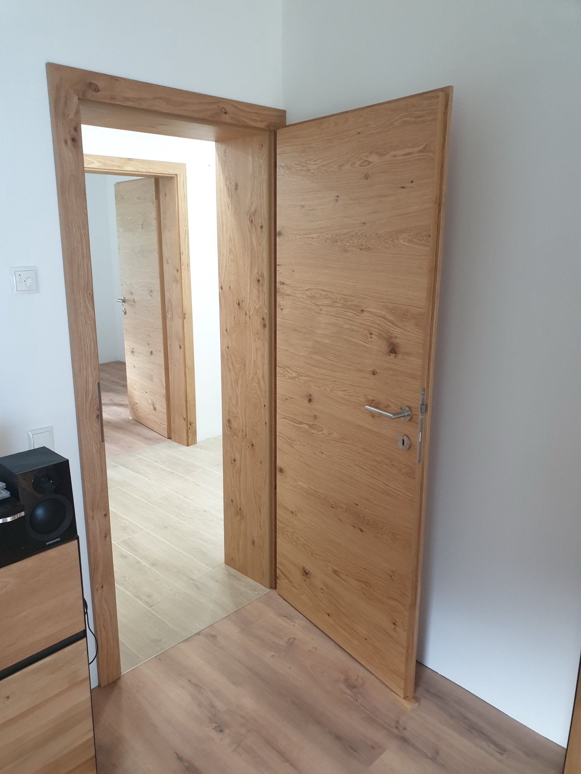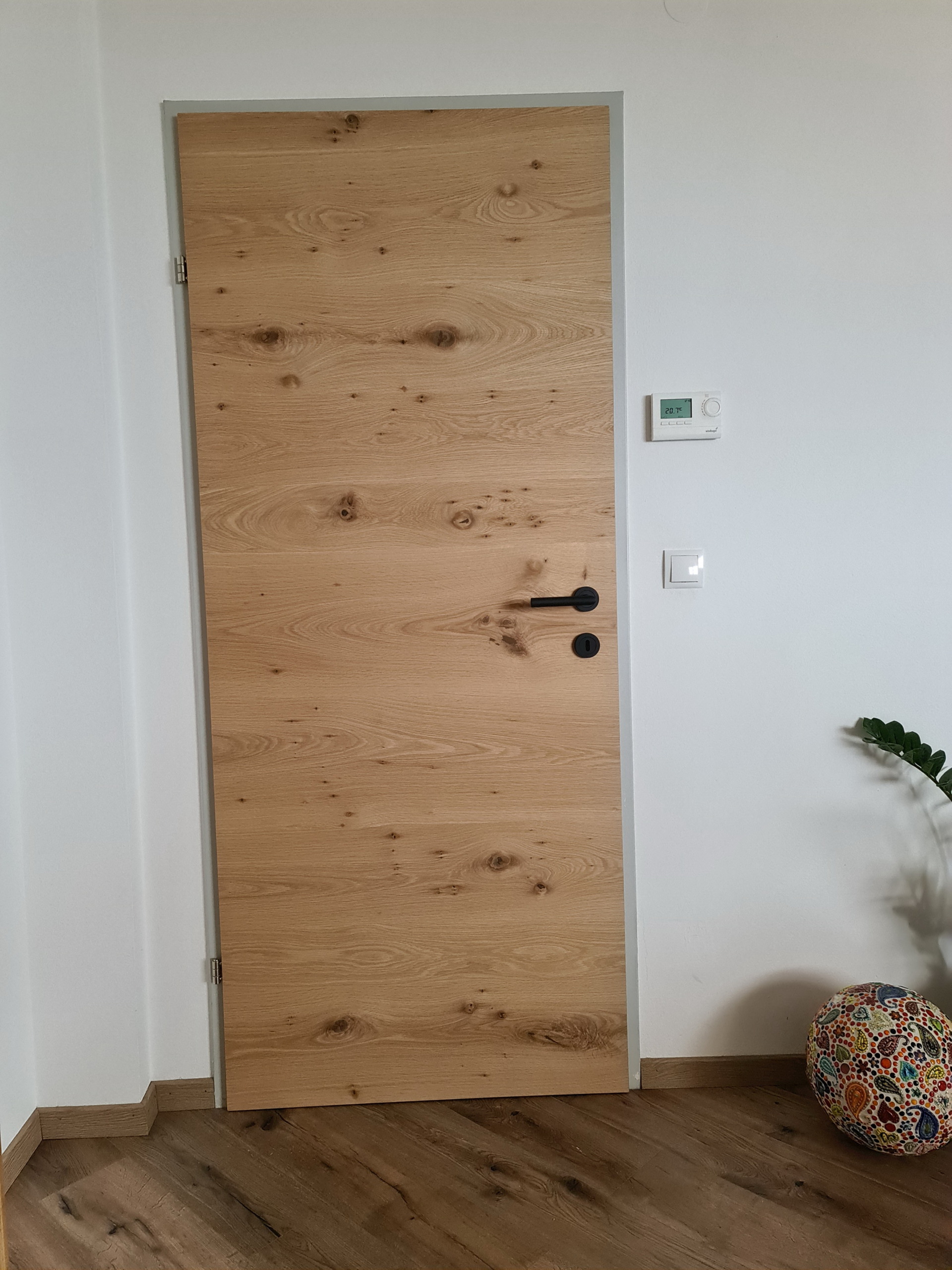 Innentüren gestalten Räume, schaffen Übergänge und setzen klare Akzente. Ob Glastüren, Zimmertüren mit Glas, Designtüren, Füllungs- oder Intarsientüren – wir fertigen individuelle Lösungen passend zu Ihrem Wohnstil. Verarbeitet werden hochwertige Edelfurniere in zeitgemäßen Holzarten. Auf Wunsch in Massivholz oder furniert, geölt oder lackiert, stumpf oder überfälzt, in Standard- oder Geschoßhöhe. Auch bei Stockvarianten wie Futterstock oder Rahmenstock bieten wir maßgefertigte Ausführungen.